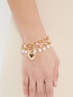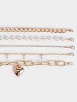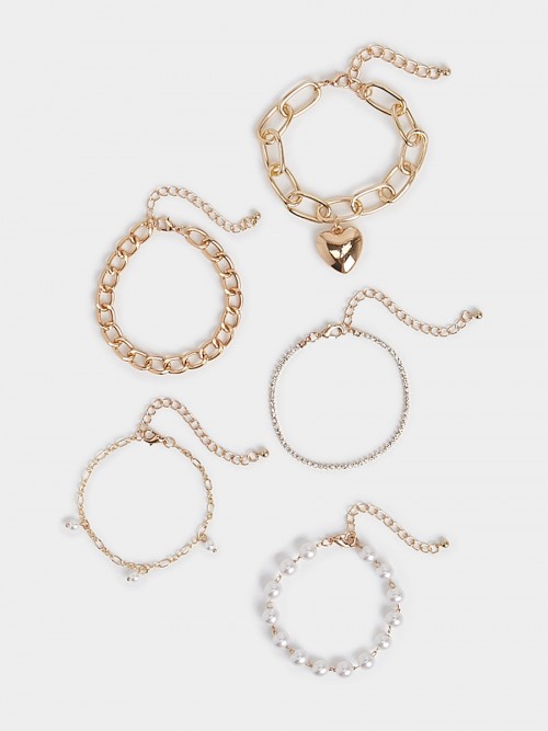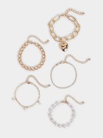 Set of 5 - Heart Pendant and Pearl Detail Bracelets
