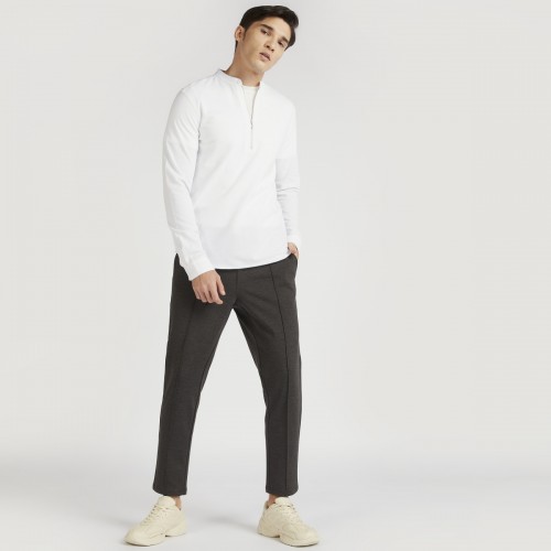Slim Fit Zipper Placket Shirt with Mandarin Collar